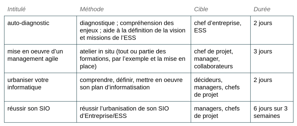 Au regard de nos valeurs, ces services ci-dessous présentés s’adressent d’abord aux entreprises de l’ESS (Entreprise Sociale et Solidaire). Toutefois, nous pouvons accepter des missions pour toutes les entreprises, si nous estimons que le partage de valeurs communes est suffisant pour que notre engagement puisse s’exprimer dans son entièreté.